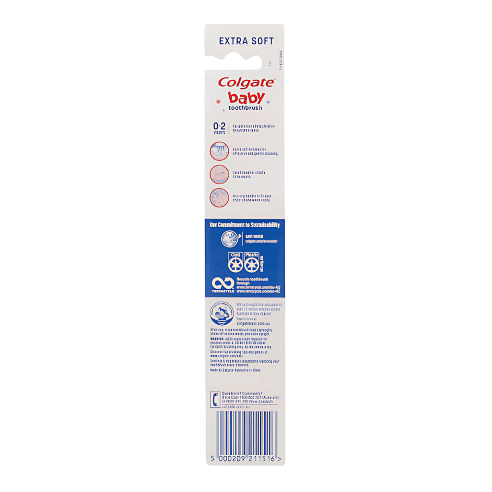 Colgate Kids My First toothbrush is made with extra soft bristles, specially designed for children who are learning to brush. Suitable for kids and toddlers ages 0-2 years of age.