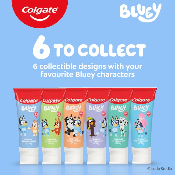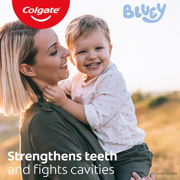 Colgate Kids Junior Bluey Toothpaste for children aged 2-5 years has a mild mint gel flavour and makes fighting cavities fun.