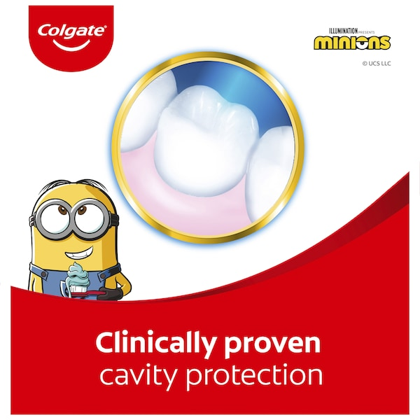 Colgate Kids Minions Fluoride Mint Gel Toothpaste for 6+ years makes fighting cavities fun, with its sugar free formula for clinically proven cavity protection