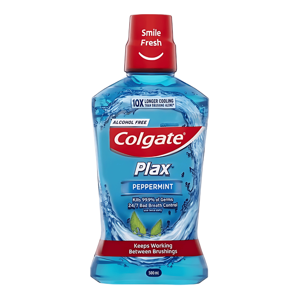 Colgate Plax Antibacterial Alcohol Free Mouthwash kills 99.9% of germs and provides 24/7 bad breath control*. Colgate Plax provides a cooling sensation that lasts 10x longer than brushing alone. Use twice daily for a healthier, fresher mouth.