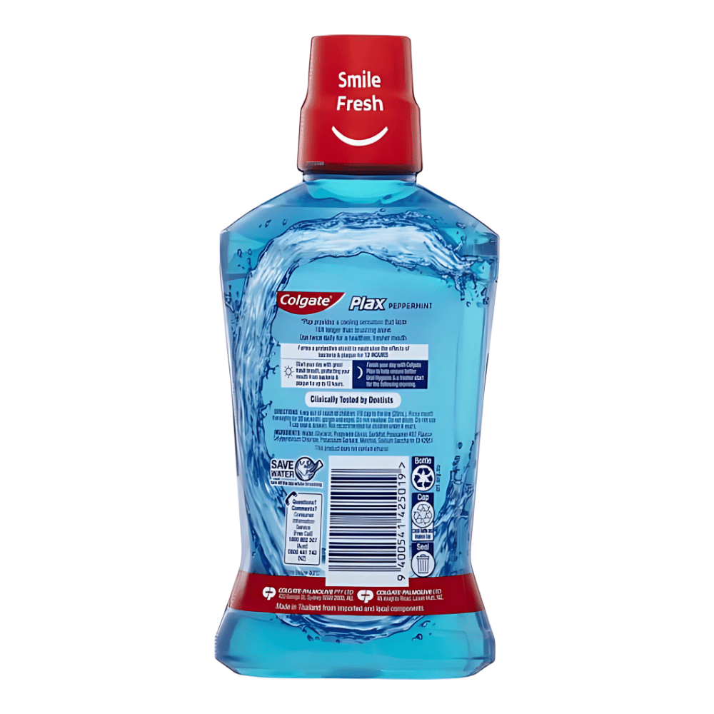 When used after proper brushing and flossing, Colgate Plax mouthwash helps deliver a plaque-control system. It works to further rid the mouth of bacteria that may linger on the tongue and inner cheeks, and helps stop new plaque from forming on and between teeth, as well as just below the gum-line. Colgate Plax forms a protective barrier shield to neutralise the effects of bacteria and plaque for 12 hours.