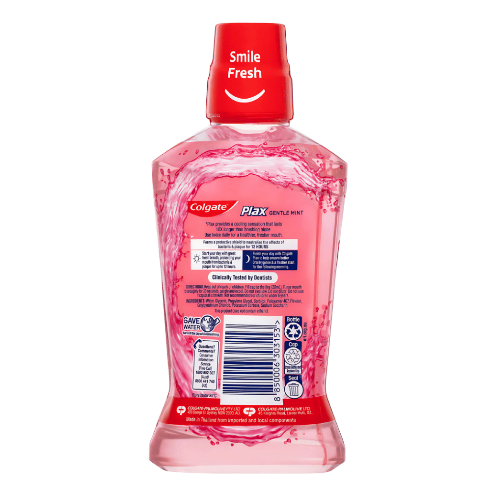Colgate Plax Antibacterial Gentle Mint Mouthwash is alcohol free and provides 24/7 bad breath control*.