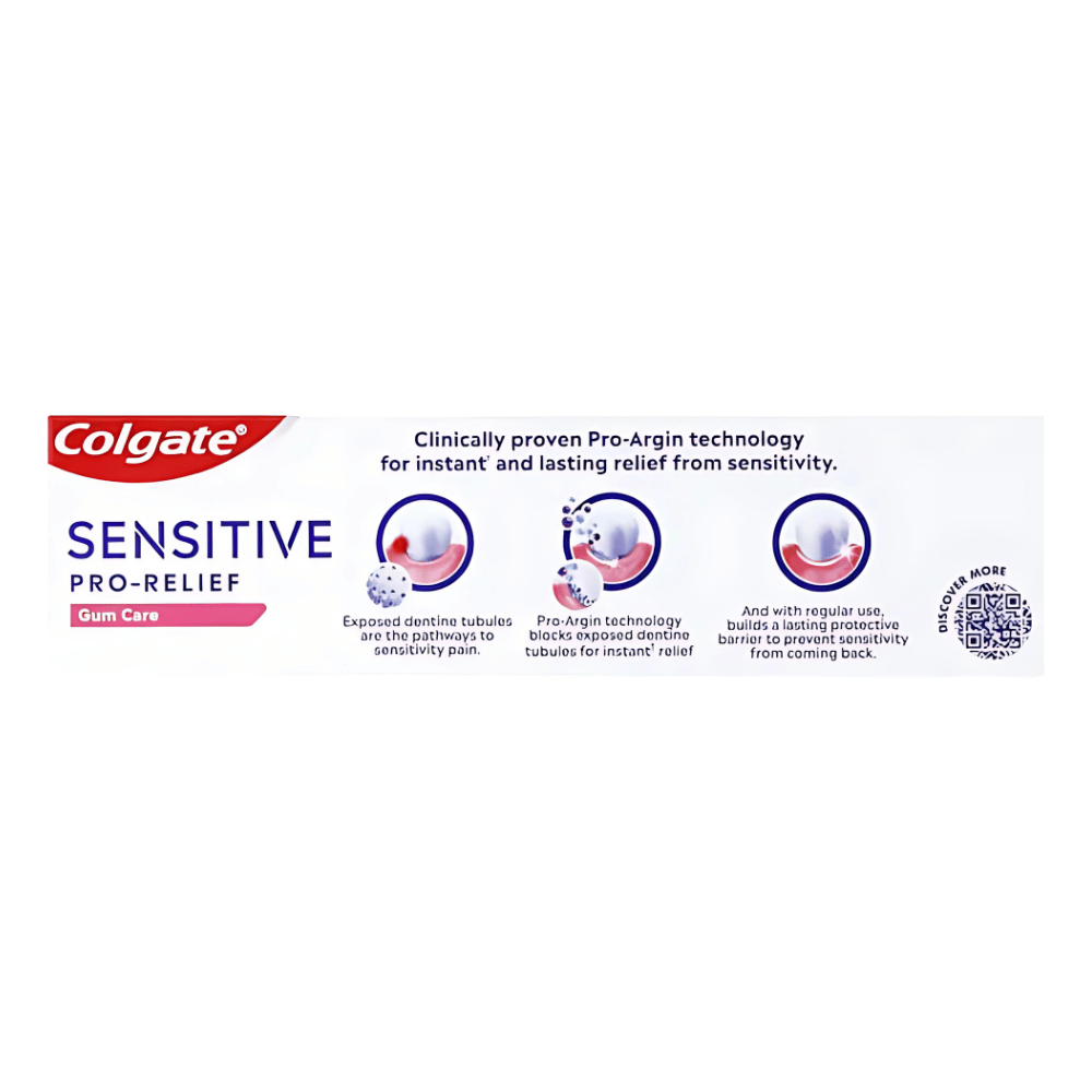 Colgate Sensitive Pro-Relief Gum Care. Provides sensitivity relief and can help to strengthen gums and prevent gum recession, addressing a key cause of sensitivity, with regular brushing.