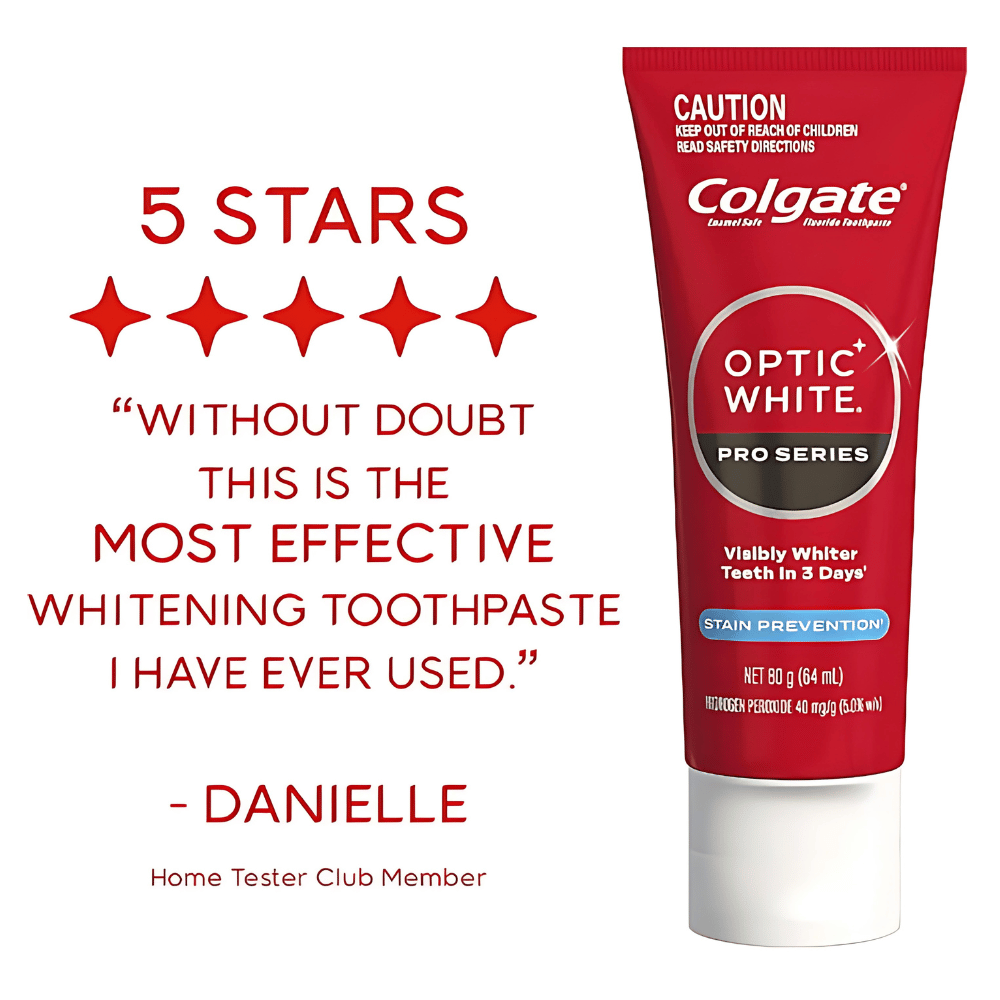 Created by whitening experts, Colgate® Optic White® Pro Series Stain Prevention^ toothpaste contains our highest level of hydrogen peroxide in a teeth whitening toothpaste, 5%. Hydrogen Peroxide is the same whitening ingredient dentists use to whiten teeth.