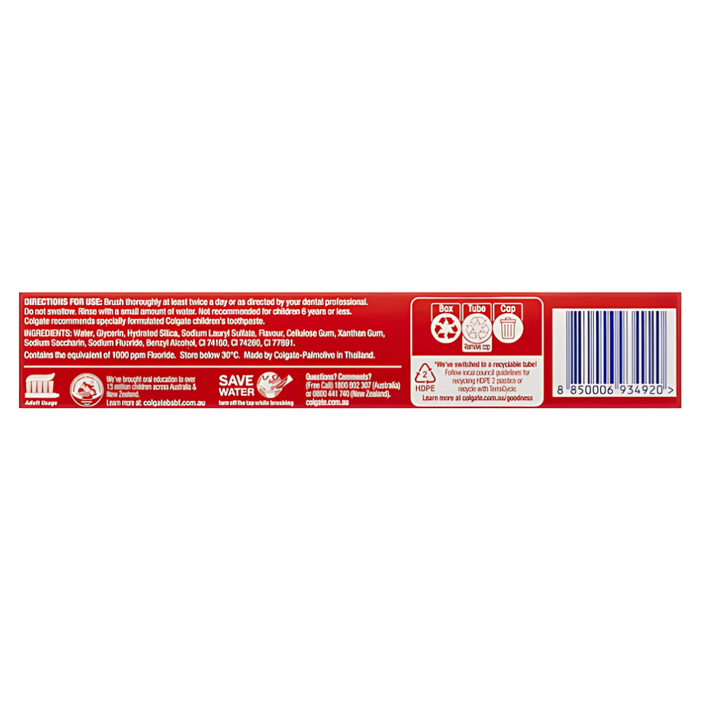 Brush thoroughly at least twice a day or as directed by your dental professional. Do not swallow. Rinse with a small amount of water. Not recommended for children 6 years or less. Colgate recommends specially formulated Colgate children’s toothpaste. Up to 12 hours of protection against bacteria with 4-weeks continuous use.