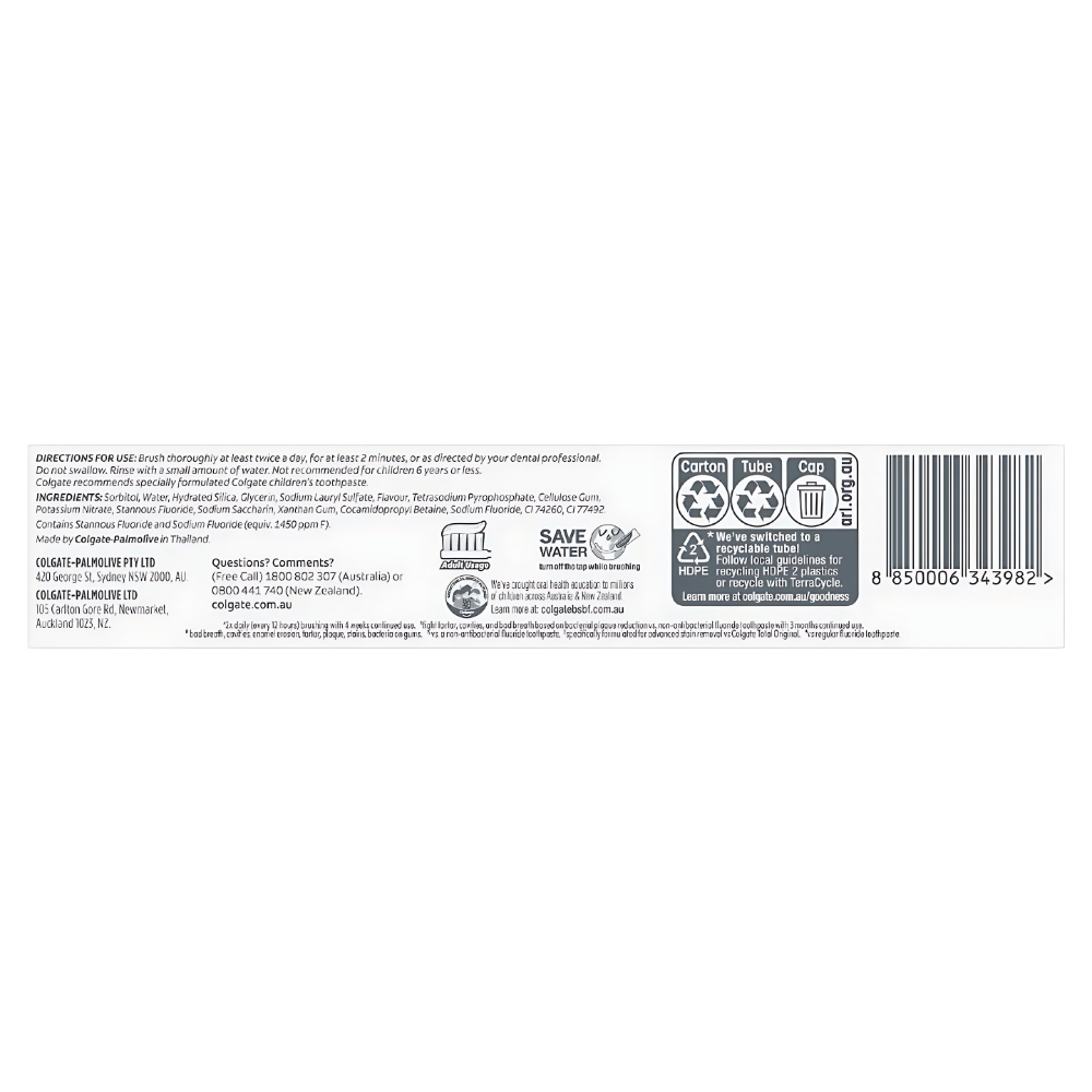 Brush thoroughly at least twice a day or as directed by your dental professional. Do not swallow. Rinse with a small amount of water. Not recommended for children 6 years or less. Colgate recommends specially formulated Colgate children’s toothpaste. Up to 12 hours of protection against bacteria with 4-weeks continuous use.