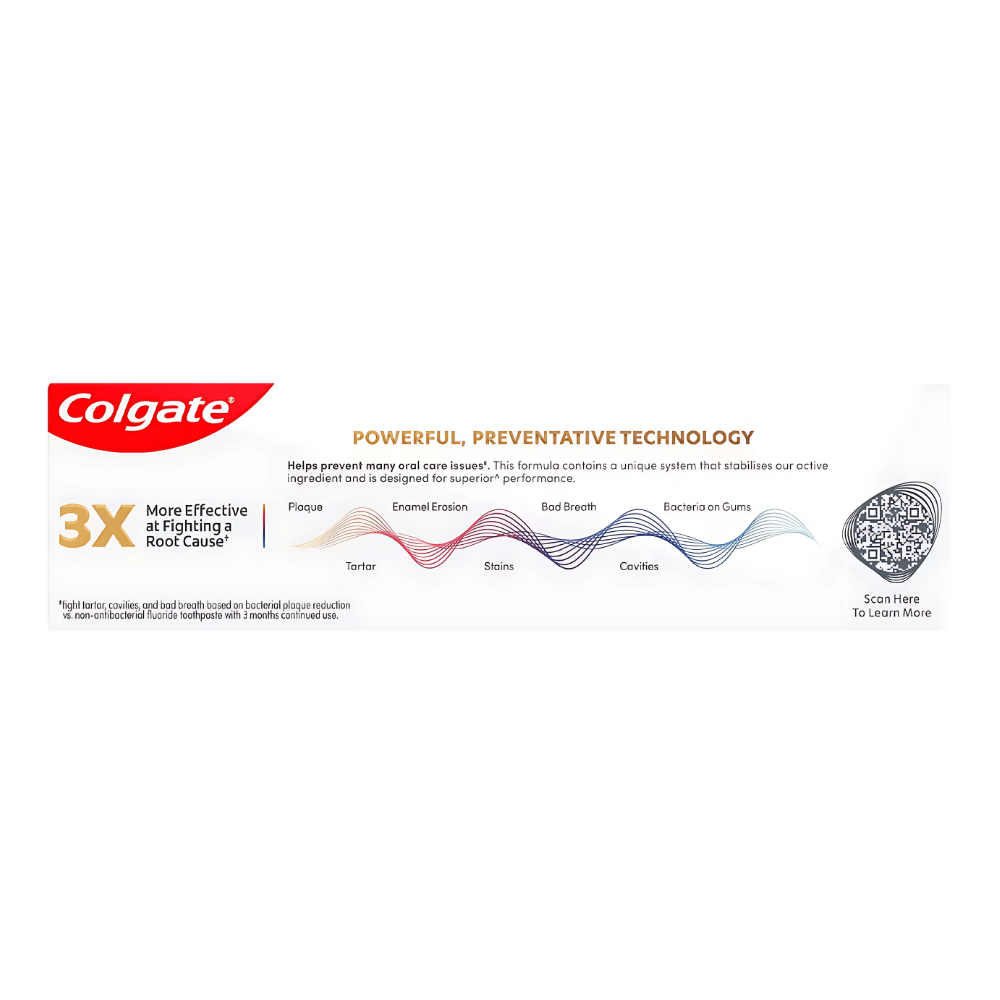 Colgate Total Active Prevention Original Toothpaste. Clinically Tested. 24 Hour Antibacterial Protection*. 3X More Effective at Fighting a Root Cause**.