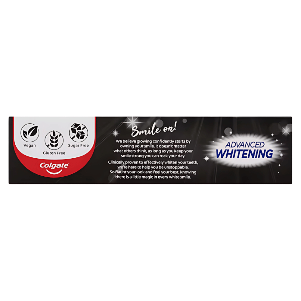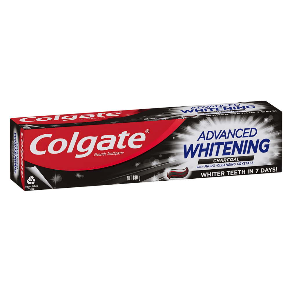 Colgate Advanced Whitening Charcoal is a whitening toothpaste infused with charcoal powder. The unique formula containing Micro-Cleansing Crystals is clinically proven to gently polish and effectively whiten your teeth.