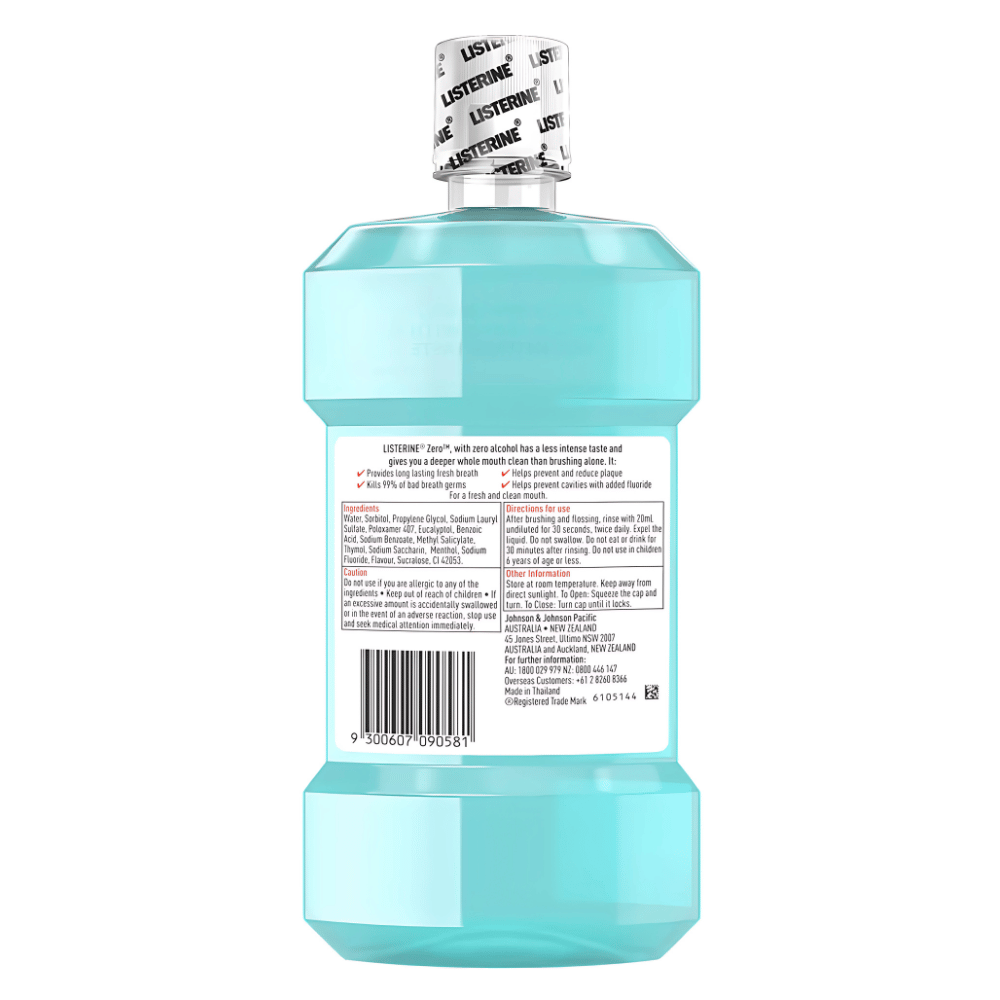 Listerine Zero, with zero alcohol has a less intense taste and gives you a deeper whole mouth clean than brushing alone. It: