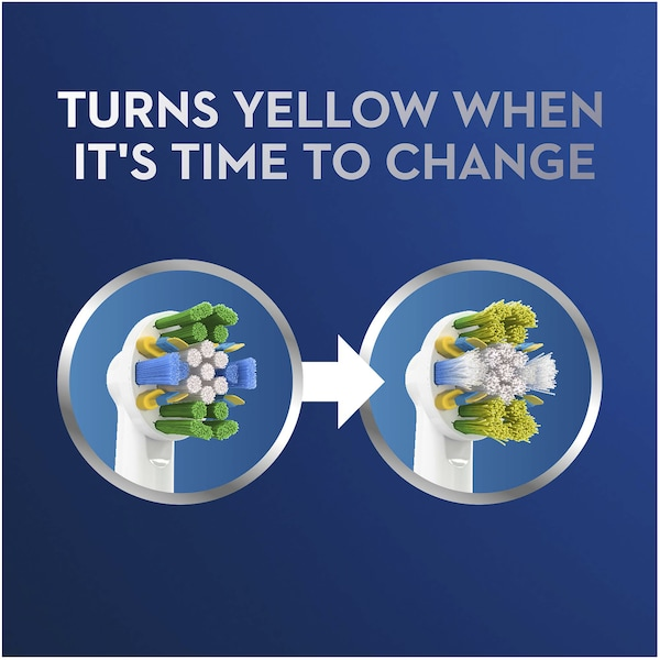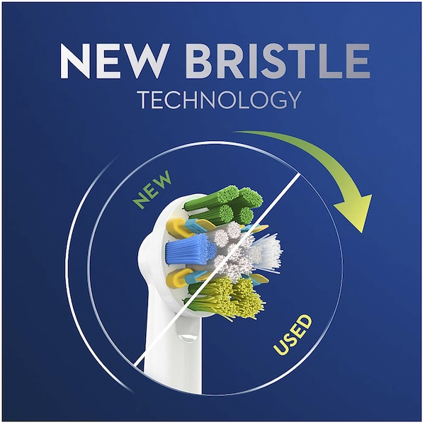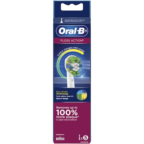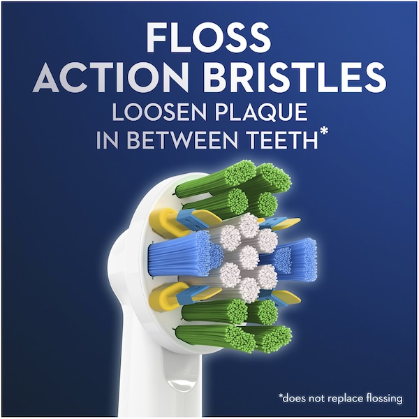 New Bristle Technology OralB Floss Action brush head turns from green to yellow indicating when it is time to change Features MicroPulse bristles that help provide a superior deep clean between teeth The bristles on the round brush head are designed to clean deep between teeth to remove up to 100 more plaque leaving your whole mouth cleaner than a regular manual toothbrush