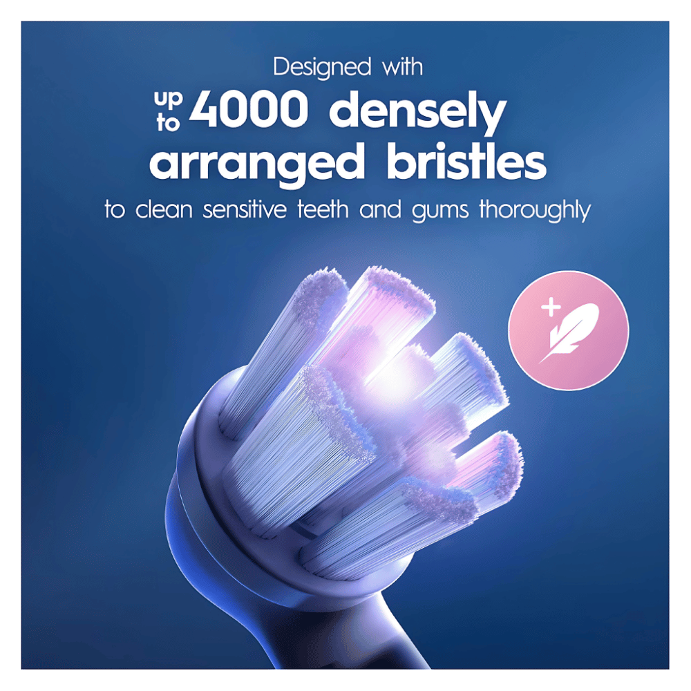 The bristles are carefully arranged on the typical Oral-B round head to better surround each tooth for optimal cleaning