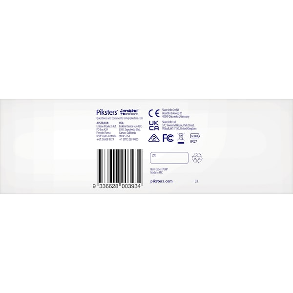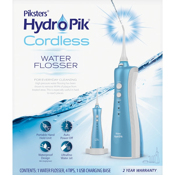 • Piksters HydroPik water flosser cleans deep between teeth and below the gumline to remove food and bacteria.