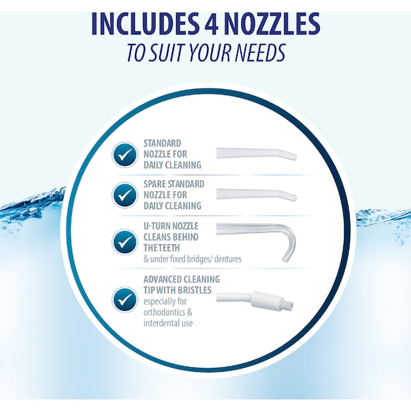 • A water flosser will get into areas that are hard to reach with a toothbrush.