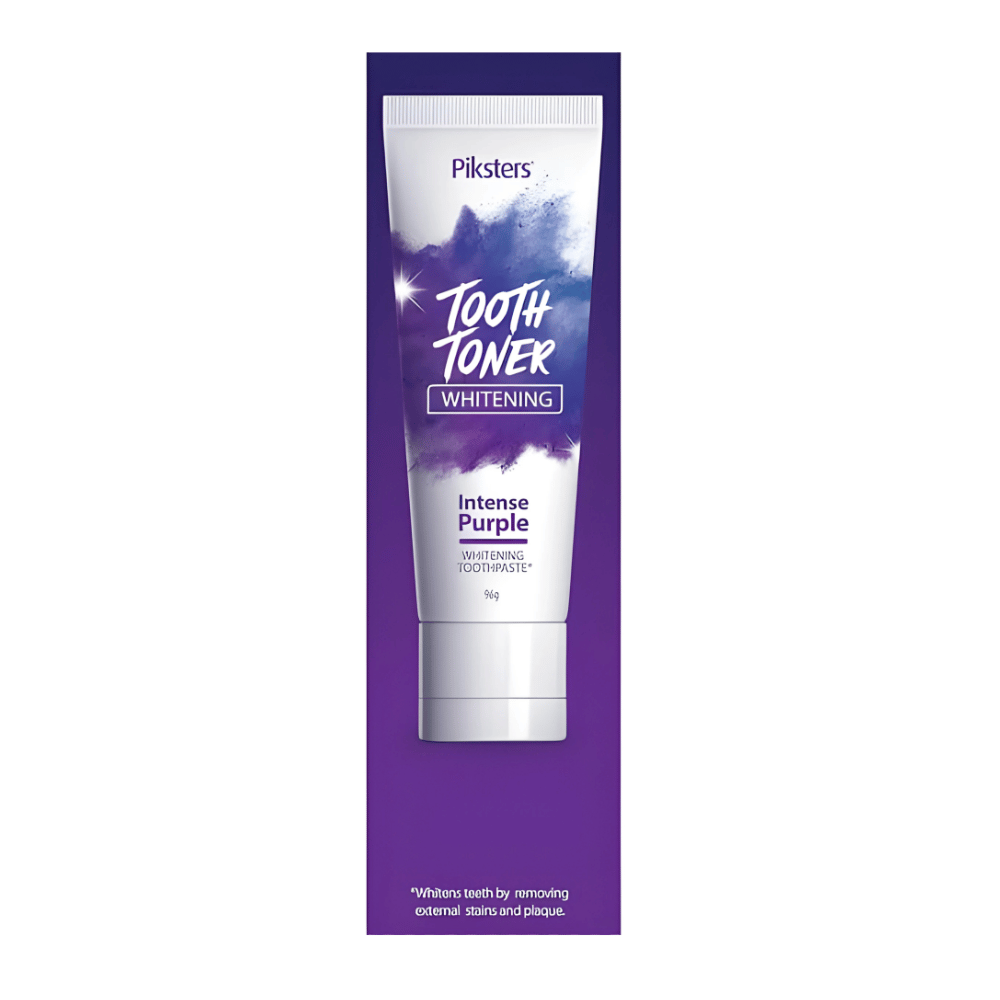 Piksters Tooth Toner Whitening Toothpaste Intense Purple is a colour correcting vibrant purple paste which creates an optical shift and whitening effect so that people perceive your teeth to be whiter.