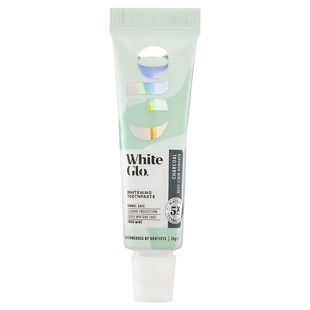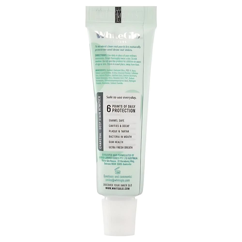 White Glo Charcoal Deep Stain Remover Whitening Toothpaste uses activated charcoal particles to naturally penetrate and draw out stains. With daily use, see a whiter smile within 7 days.